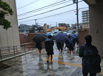 雨の中の下校となりました。気をつけて帰宅してくださいね。部活動も活発に行われています!雨にもマケズ、がんばっています!