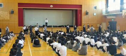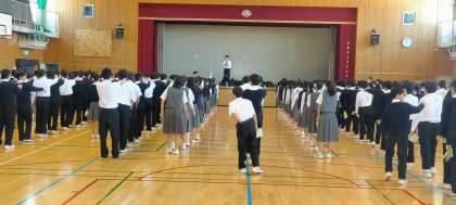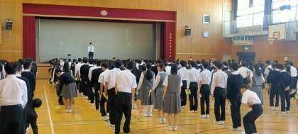 本日3年生は、1限目より修学旅行の最終打ち合わせを行っております。行事の成功は、まずは準備からです。しっかりと持ち物の確認や各場面での整列のチェックも行い、準備万端です。気をつけていってらっしゃい!