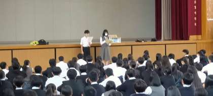 修学旅行実行委員の進行のもと、出発式が行われています!