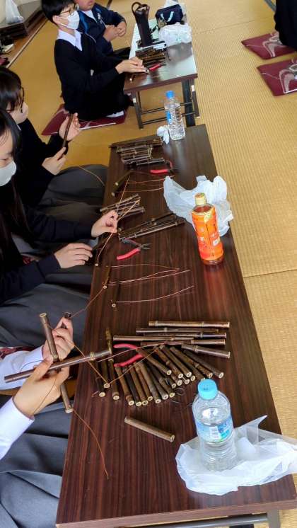 黒竹民芸品作りの様子です!手際よく、頑張って作っています!