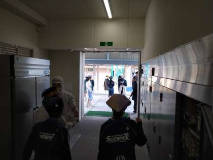 今日は、給食室でさやから取り出したえんどうを使っています。