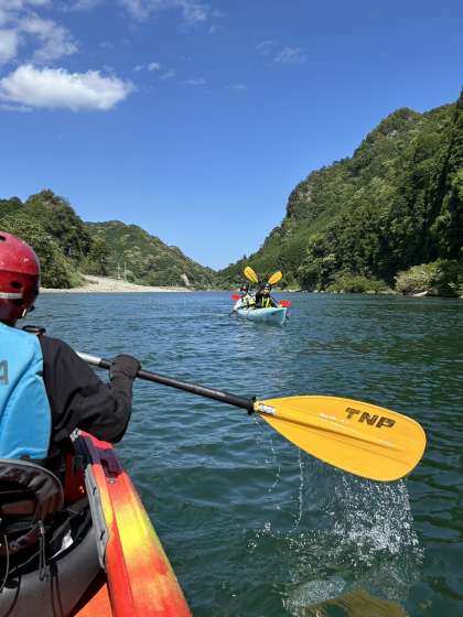 古座川カヤックは、天気も良く、とても気持ちよく体験しています!