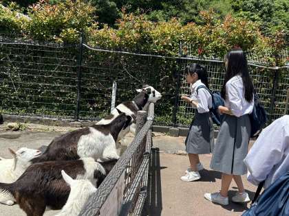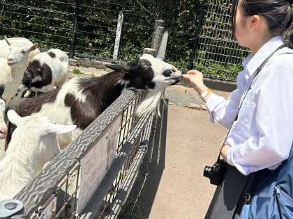 楽しいひと時です!ヤギのえさをあげている様子です。