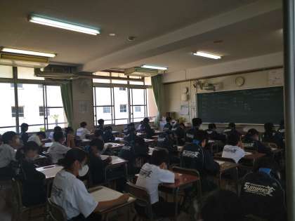 1年生の数学のテストの様子です。教科の先生方が回ってくださっています。