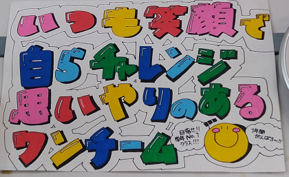 「いつも笑顔で自らチャレンジ思いやりのあるワンチーム」学年目標でしょうか?とてもいい目標ですね!
