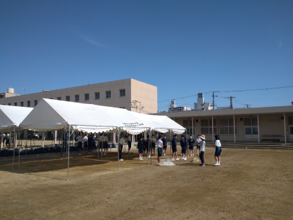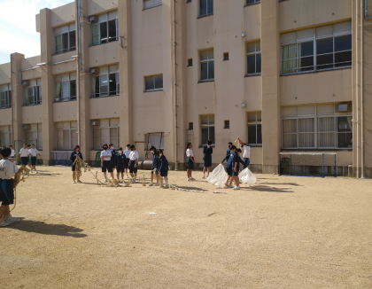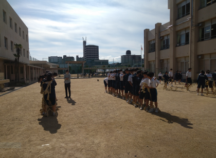 今日も朝練が行われていました。青空のもと、各学級で工夫をしながら、前向きに取り組んでいます。チームの「和」を大切にし、がんばってください。
