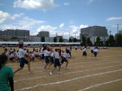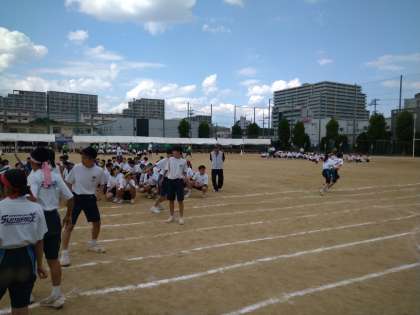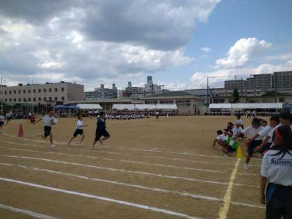 今年の体育大会ラスト種目、全員リレーが行われています!みんなでクラスの絆のバトンを繋いでます!勝敗を越えた素敵な時間が流れています。