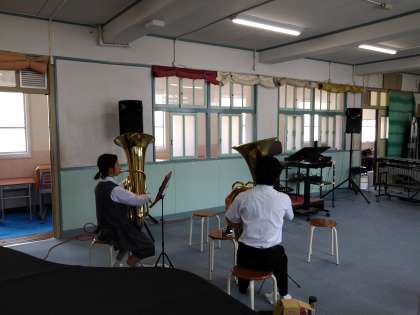 吹奏楽部が練習に励んでいます。校内にきれいな音色が響いております。