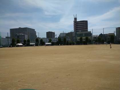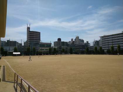 グラウンドでは、野球部が練習試合を行っています。暑さにも負けず、がんばっています!