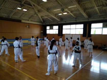 格技室では少林寺拳法部が一所懸命に練習をしています。先輩が後輩を指導する姿も見られました。どの部活動もがんばっています!