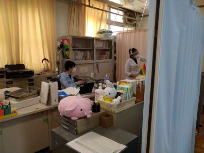 本日、1年生は耳鼻科検診を行っています。検診前の様子は、きちんと静かに待つことができています。靴もきれいに並べています。所見があった人は、早いお医者さんの受診をお願いいたします。