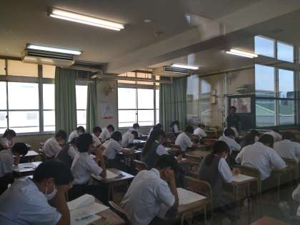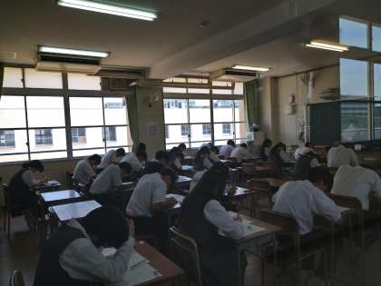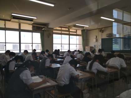 本日、3年生は第1回実力テストに臨んでいます。今の学習定着をはかるテストです。時間いっぱいまで、しっかりと取り組んでください。がんばれ、3年生!
