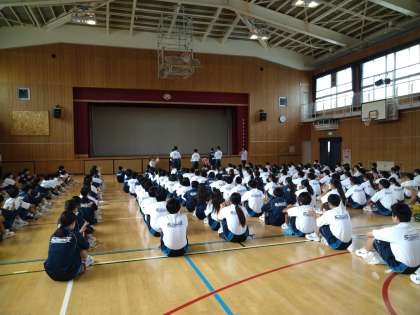 先生からは、体育大会の練習を通じ。みなさんの成長を感じたとのお話でした。最初は、行進も揃っていなかったが、練習を重ねるごとに、成長が見られました。よく頑張った体育大会でしたが、みなさんは『もっともっとできます』とのエールを送られていました。