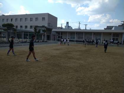 グラウンドでは、たくさんの部活動が場所を共有しながら、活動をしていました!