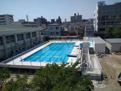 順調にプール工事が進んでおります! 水が張られとてもきれいな様子です。