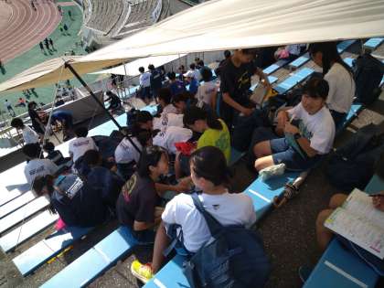 頑張れ、陸上部のみなさん!顧問の先生も役員で記録会を支えてくれています。ありがとうございます!