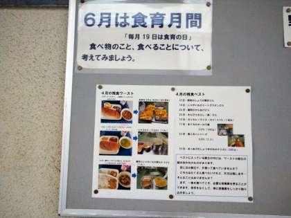 今月6月は「食育月間」です、食べ物のこと、食べることについて、いつも以上に意識してみましょう!残さず、しっかりと食してください。また、毎月19日は、「食育の日」です。よろしくお願いいたします!