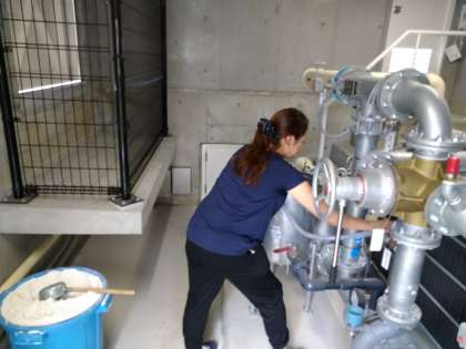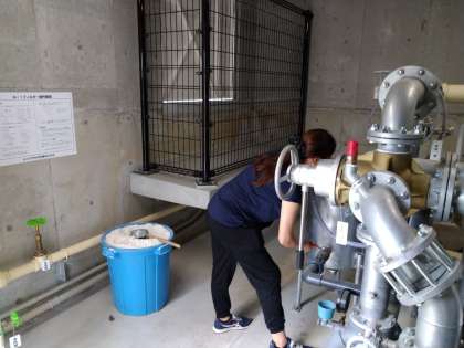 今日から新しいプールのお披露目となります。朝から、顧問の先生が水泳部のみなさんのために朝からプールのろ過作業をしてくださいました。安心、安全なプールでみなさんを迎えるために、がんばってくれました!ありがとうございます。