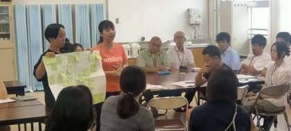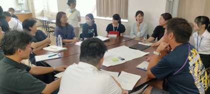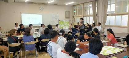 研究授業の後に行われた研究協議のなかでは付箋を用いたワークショップ型の研究協議が行い、生徒だけでなく教諭自らが主体的に対話的に深い学びの実践が行われました。授業について、活発な研究協議が行われました。その様子を見た講師の宮田様より「ICTを使うか、使わないかではなく、ICTを使うことが前提で、いかに生徒が『主体的に対話的に深い学び』をどのように行えるようになるかが大切である。その中で、本日の3つの授業はとても先駆的である。」とお言葉をいただきました。授業者だけでなく、本日の悉皆の研究協議に参加した教職員にと活かしていきって、とても有意義な時間となりました。