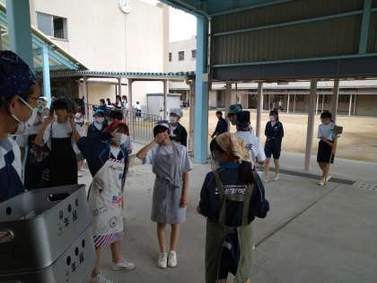 今日も美味しい給食「ありがとうございました。」今日は3年1組のみなさんが一番早く給食棟へ来てくれました!