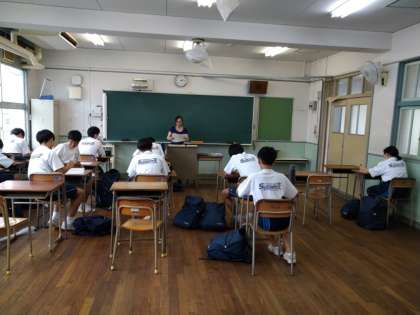 今日は、あいにくの雨でグラウンドは使用不可でしたが、校内でどの部活動もがんばっていました。英語部のみなさんが、しっかりと取り組んでいました!!