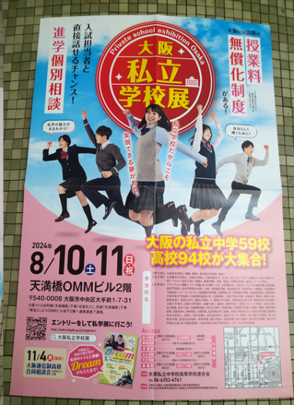そのうちの1つに「大阪私立学校展」がございます。お時間のある時に、足を運んでみてはいかがでしょうか。