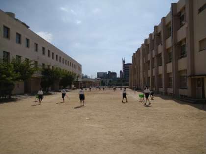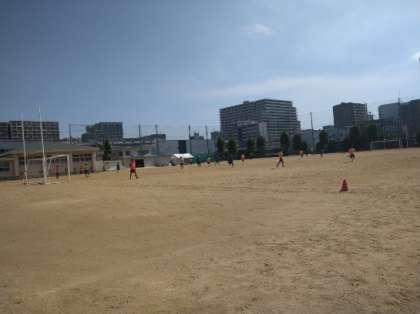 8月に入りました。今日も部活動が盛んに行われています。グラウンドでは、野球部とサッカー部が場所を共有しながら練習に励んでいました。中庭では、ソフトテニス部が練習に取り組んでいました。どの部活動も暑さに負けず、がんばっています。