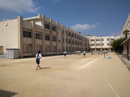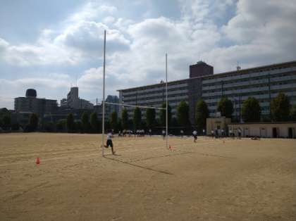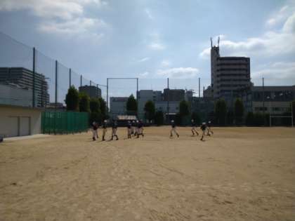 朝のグラウンドの様子です。陸上部が黙々とトレーニングに励んでいました。野球部は、基礎の練習をしていました。どちらの部活動もとてもがんばっています!中庭では、ソフトテニス部も元気よくプレーする姿が見られました。