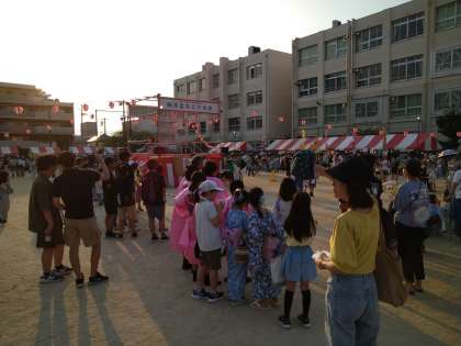 本日、関目東小学校内でお祭りが開催されています。お昼の3時からの開催です。とても盛り上がっております。コロナ前に戻りました!地域の皆様、ご対応ありがとうございます。
