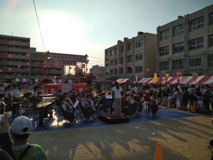 関目東小学校内でのお祭りに華を添える演奏をしてくれました。