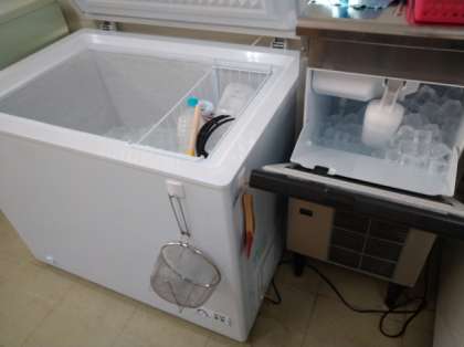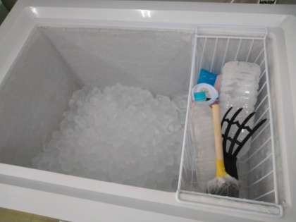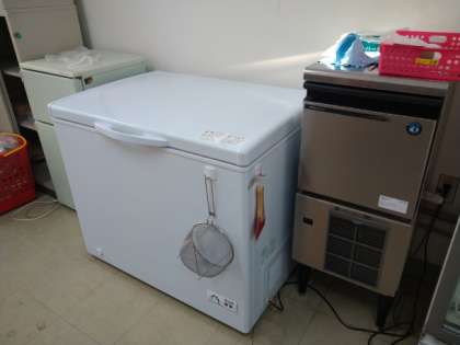 本校では、昨年度PTAの方々に貯氷庫を購入していただきました。製氷機でできた氷を貯氷庫でたくさん氷をためております。この夏もとても役立っております。ありがとうございます。