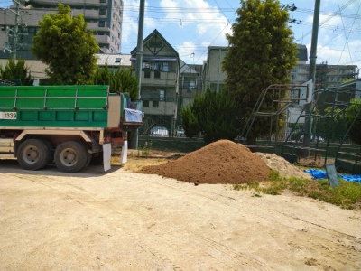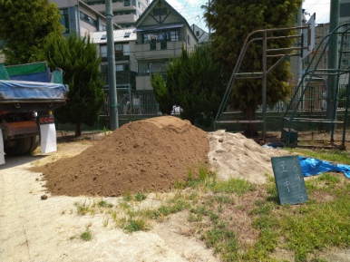 本日、グラウンド用の真土が搬入されました。大切に使用しましょう!