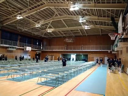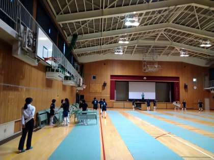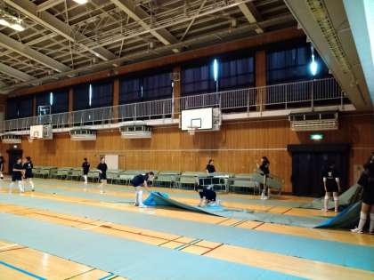 本日、練習後にバレーボール部の皆さんが、明日の高校説明会の会場設営をしてくれました。ありがとうございます。手慣れたもので、とても早く会場が整いました!