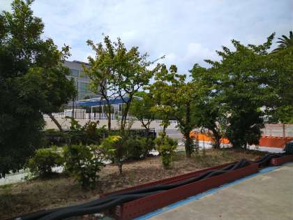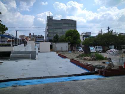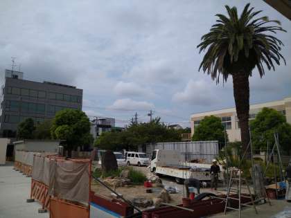 今日も工事が行われています。暑い中、いつもご対応ありがとうございます。プール工事に伴い、中庭と職員室の間の柵も撤去されました。中庭もとてもきれいに整備されています。