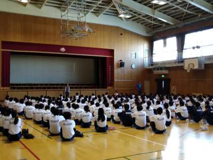 水曜日の今日は、1年生定例の学年集会が行なわれました。先生より、この夏の部活動でのお話がありました。一所懸命に取り組りくむ姿勢が、自身の経験に大きなプラスになるというお話でした。