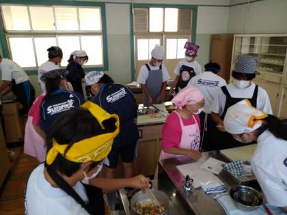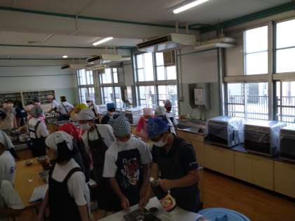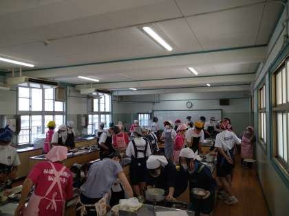 今週から、2年生の調理実習が始まりました。今回のメニューは、豚汁です。地域ボランティアの方や先生のもサポートをいただきながら、班で協力し、調理実習をしました。とても上手に調理をしていました。担任の先生にも振る舞われ、「とても美味しい!」との感想をいただきました。