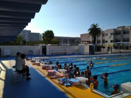 プールでは水泳部が、今日もいい雰囲気で練習に励んでいました!放課後は、どの部活動もみな、熱心に取り組んでいます!