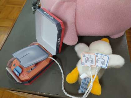 昨日の9月9日「救急の日」にちなんで、保健室の先生が、AEDペーパークラフト展開図を紹介していただきました。ありがとうございます。本校には、保健室前と体育館内に2台設置しております。