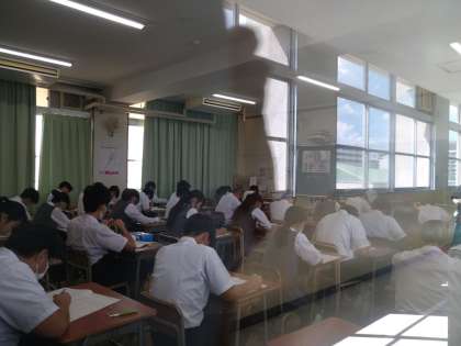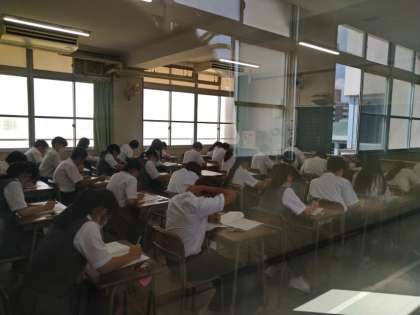 今日は、3年生は第2回実力テストに臨みました!実力テストは一日で、5教科を受けます。最後の英語のテストの様子です。3年生のみなさん、しっかりと解くことはできましたか…?
