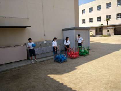 グラウンドでは、ボールで遊ぶ様子が見られました。整備委員のみなさんが、毎日、ボール当番をしてくれています。ありがとうございます。