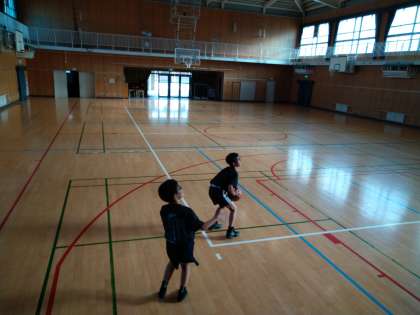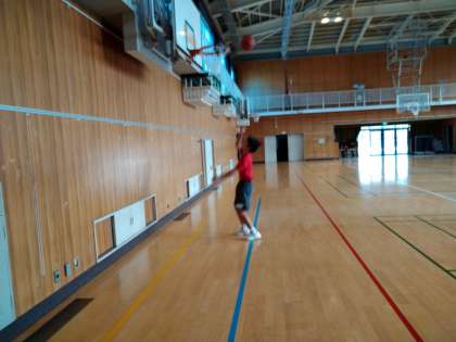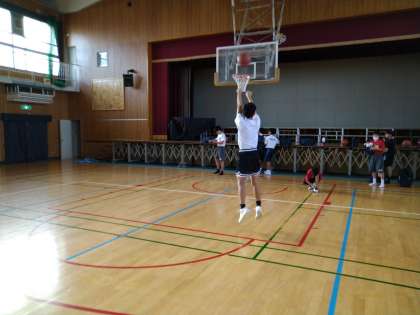 早朝より、バスケットボール部のみなさんが練習に取り組んでいます。バスケットボール部のみなさんが放つシュートは、たくさんゴールします!明日の試合、頑張ってください!!