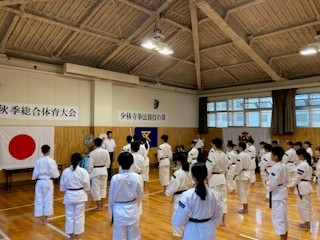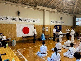 本日、大淀中学校において、大阪市秋季総合体育大会が開催され、本校の少林寺拳法部も多数参加しました。