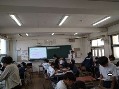 本日の2限目、教育実習生の研究授業が行われました。内容は、地理分野でした。