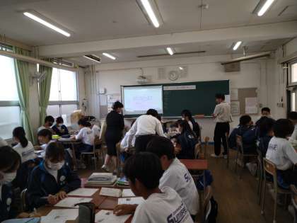 班での意見交換をはじめ、とても意欲的に授業に参加していました。子どもたちは、しっかりと話も聞くことができており、また、自身の意見もきちんとみんなに伝えることもできていました。教育実習生も、とても丁寧に教えてくれていました。