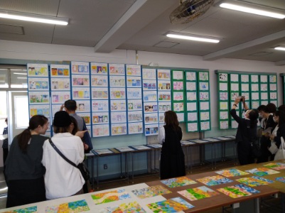 4限目より、保護者対象の展示見学を行いました。数多くの保護者の方々に来校していただきました。「ありがとうございます。」