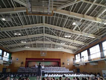 吹奏楽部の演奏の後、放送部のラジオドラマ、最優秀賞受賞学級の合唱(1・2年生)、締めは、3年生の全体合唱でした。とても迫力のある合唱でした。3年生のみなさん、「素晴らしい歌声、ハーモニー、ありがとうございました。」