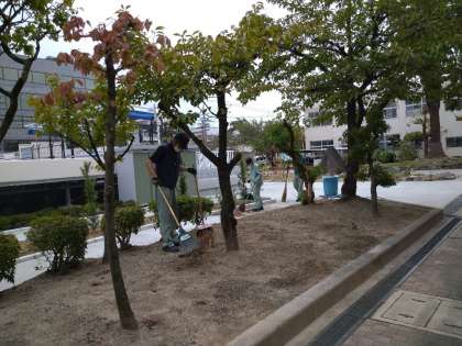 毎日、朝早くから、管理作業員の方々が、校内の整備・清掃をしてくださっています。いつも中庭を含め、校内のあらゆるところをとてもきれいに整えていただき、ありがとうございます。
