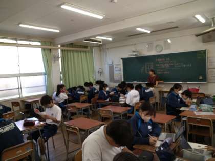 4限目の2年生は、来週に控えた校外学習事前学習に取り組みました。端末を巧みに使い、壁新聞の作成を行っていました。プレゼンの練習も行っていました。とてもいい雰囲気でした。