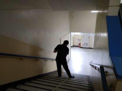 階を上がると、階段の清掃をしてくださっている先生がおられました。ありがとうございます。きれいに使用をしましょう。
