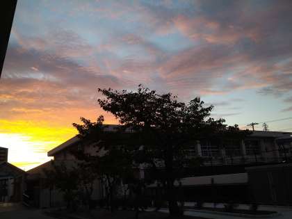 おはようございます。今朝は少し肌寒い一日の始まりです。気温の変化が大きいですので、体調を崩さないようにしてください。東の空の朝焼けがとても鮮やかな朝を迎えました。